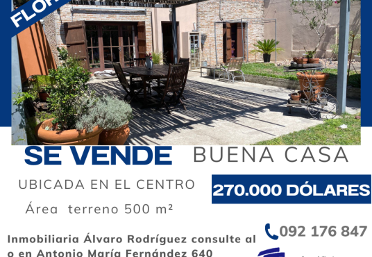 $ 270.000Se vende Buena casa céntrica Comodidades: 4 dormitorios, 2 baños, living, cocina, comedor, garaje y amplio patio. Precio: 270.000 dólares Consulte en Antonio María Fernández 640 o al 092176847