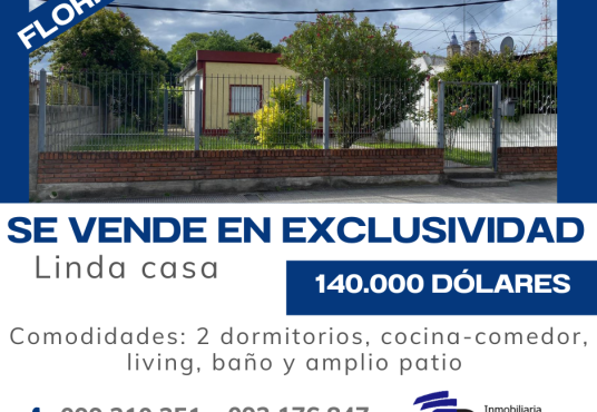 $ 140.000Se vende linda casa Comodidades: 2 dormitorios, living, cocina, baño, patio y churrasquera techada Precio: 140.000 dólares Consulte en Antonio María Fernández 640 o al 092176847